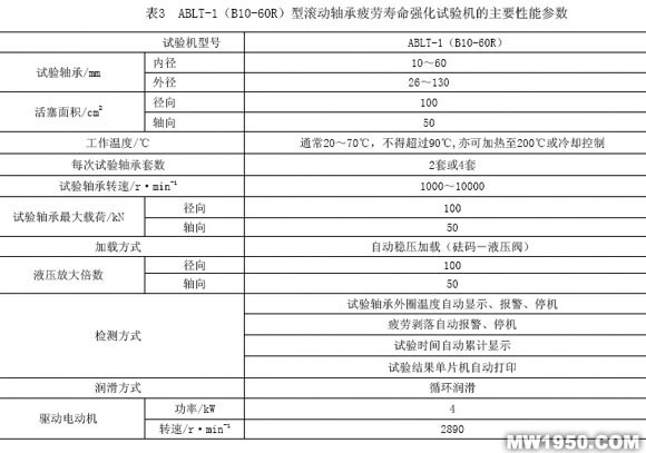3. ABLT系列滾動軸承疲勞壽命強化試驗機主要性能參數(shù)