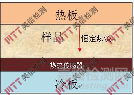 熱流計(jì)法是一種基于一維穩(wěn)態(tài)導(dǎo)熱原理的比較法。將樣品插入兩個(gè)平板間,在其垂直方向通入一個(gè)恒定的單向的熱流,使用校正過(guò)的熱流傳感器測(cè)量通過(guò)樣品的熱流,傳感器在平板與樣品之間和樣品接觸。熱流法適用于低導(dǎo)熱材料,測(cè)試時(shí)將樣品夾在兩個(gè)熱流傳感器中間測(cè)試,在達(dá)到溫度梯度穩(wěn)定期后,測(cè)量樣品的厚度、上下板間的溫度梯度及通過(guò)樣品的熱流便可計(jì)算得到導(dǎo)熱系數(shù)的絕對(duì)值。適合測(cè)試導(dǎo)熱系數(shù)范圍為0.001~50W/m•K 的材料如導(dǎo)熱膠、玻璃、陶瓷、金屬、鋁基板等低導(dǎo)熱材料。