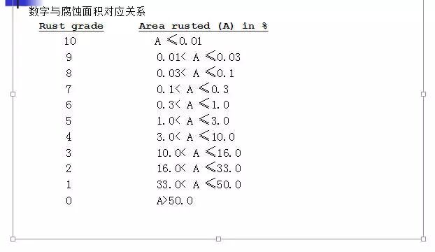 數(shù)字與腐蝕面積對(duì)應(yīng)關(guān)系,如下圖: