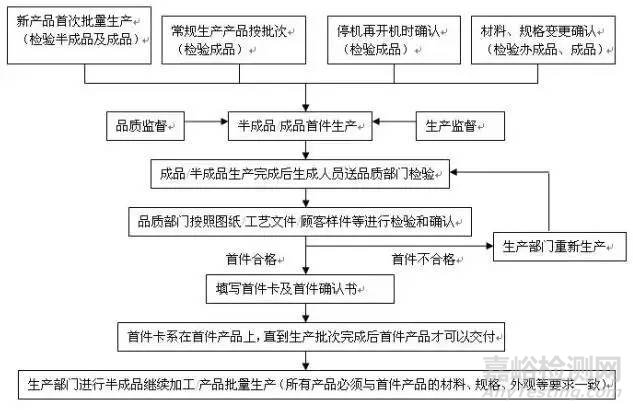 對生產(chǎn)部門首次連續(xù)性生產(chǎn)的第一個完工的半成品和成品,必須經(jīng)過首件檢驗和確認。