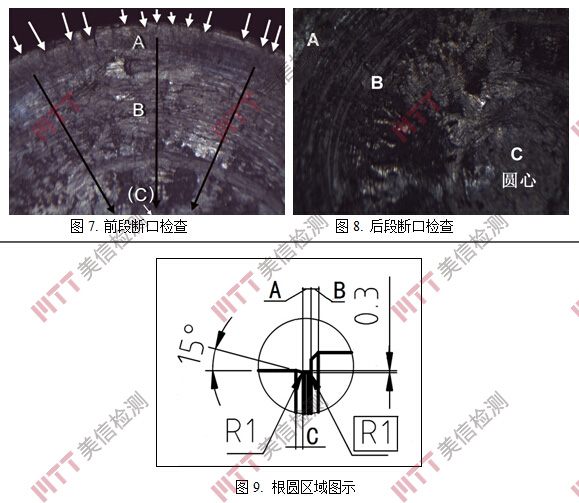 斷裂部位在軸與軸肩過渡處,此位置直徑發(fā)生突變。實(shí)際根圓半徑太小,圓角與直邊接點(diǎn)不相切,應(yīng)力集中程度大,容易開裂。材料強(qiáng)度和疲勞強(qiáng)度越低,開裂趨勢(shì)越大。
