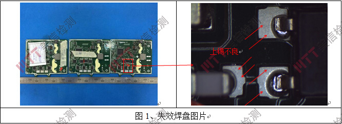 如圖1所示,通過對失效焊盤進行顯微放大觀察,焊盤存在不上錫現(xiàn)象,焊盤表面未發(fā)現(xiàn)明顯變色等異常情況。
