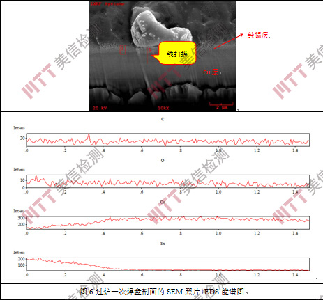 b). 焊盤經(jīng)過過爐一次時,高溫會促使錫與銅相互擴散,形成合金層,導致純錫層變薄;