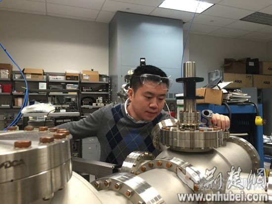 張磊正在美國(guó)賓州州立大學(xué)實(shí)驗(yàn)室做科研