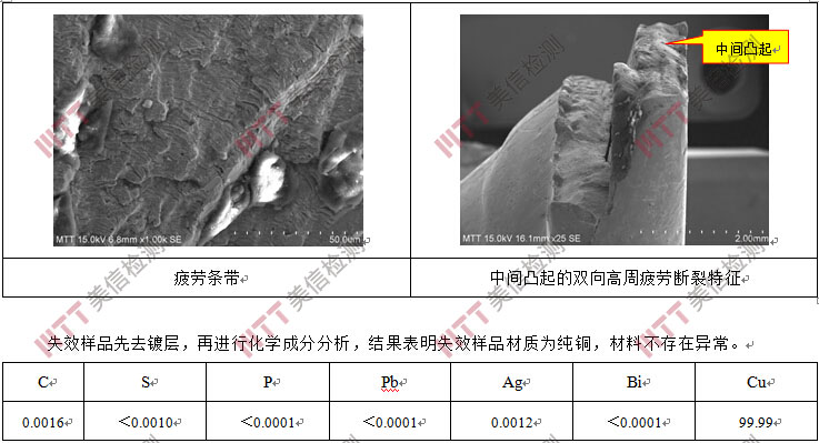 從化學(xué)成分可知失效樣品的銅含量在99.99%,材質(zhì)為純銅,材料不存在異常。