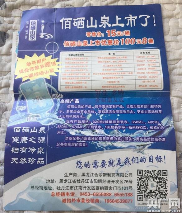 一家事業(yè)單位負(fù)責(zé)采購的工作人員告訴記者:“市里領(lǐng)導(dǎo)推薦的,說水含硒量非常高,高出國家標(biāo)準(zhǔn),市政府辦公室都喝。”