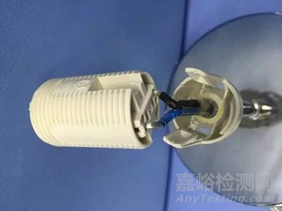 燈具不同部件間的螺紋連接,如上圖1中常見結(jié)構(gòu)的臺(tái)燈,線扣在底盤中(圖2),燈座內(nèi)是沒有線扣的。如果中間的金屬桿與底盤之間、中間金屬桿與燈座之間沒有可靠地防松措施的話,實(shí)際使用時(shí)這些螺紋連接松脫(如手可以松開這些螺紋連接),內(nèi)部線就可能擰絞超過360º,不滿足標(biāo)準(zhǔn)的要求。