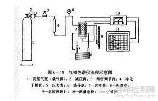 載氣由高壓氣瓶1(或其他氣源)經(jīng)減壓閥2減壓供給,精密調(diào)節(jié)閥3控制載氣的壓力和流量,再通過凈化干燥管4凈化脫水之后,進入熱導(dǎo)池6的參比池,隨后通過進樣器7到色譜柱8,最后從熱導(dǎo)池的測量池放空。