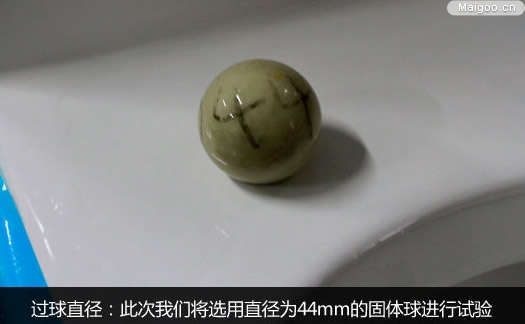 對此,國標(biāo)利用馬桶的過球直徑來檢驗排污管道是否容易堵塞。一般馬桶排污管道的管口直徑在45-50mm之間,而在管道中間部分會略微收窄。假如管道最窄位置能通過直徑為41mm的固體球,就達到國標(biāo)過球直徑試驗的要求了。