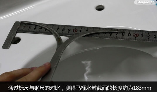 通過標(biāo)尺與鋼尺的對比,測得馬桶水封截面的長度約為183mm。