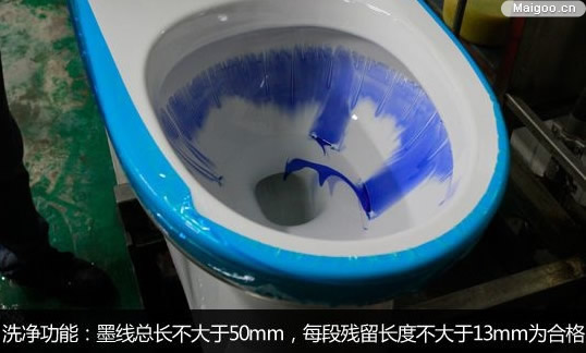 只能將馬桶水封里的固體排放物沖走是遠(yuǎn)遠(yuǎn)不夠的,很多時候,馬桶內(nèi)壁會沾滿污漬,此時,需要利用水力將其沖刷干凈。而在國標(biāo)當(dāng)中,是利用墨線累積長度來檢驗馬桶洗凈能力的強弱。