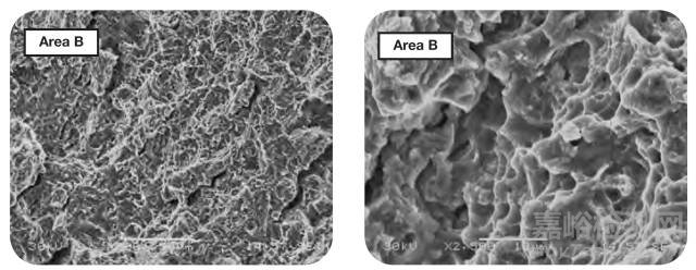 B區(qū)高倍形貌:瞬時(shí)斷裂區(qū)形貌