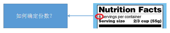 美國規(guī)定,營養(yǎng)標簽必須同時以家用計量單位和國際計量單位顯示份量。消費者可以通過查看家用計量單位,準確判斷和把握該食品的推薦攝入量,養(yǎng)成科學(xué)合理的膳食習(xí)慣。美國規(guī)定營養(yǎng)標簽應(yīng)以國際計量單位顯示份量,為開展國際貿(mào)易提供便利性與公平性。以下將分步介紹份量和份數(shù)的標識方法。