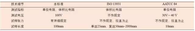 可以看出本標(biāo)準(zhǔn)比ISO 13931、AATCC 84的測(cè)試指標(biāo)多,影響測(cè)試的因素都作了詳細(xì)的規(guī)定,如按 ISO 13931、AATCC 84測(cè)試滌綸、錦綸導(dǎo)電絲,其數(shù)值的 精度、離散性均不如本標(biāo)準(zhǔn)。
