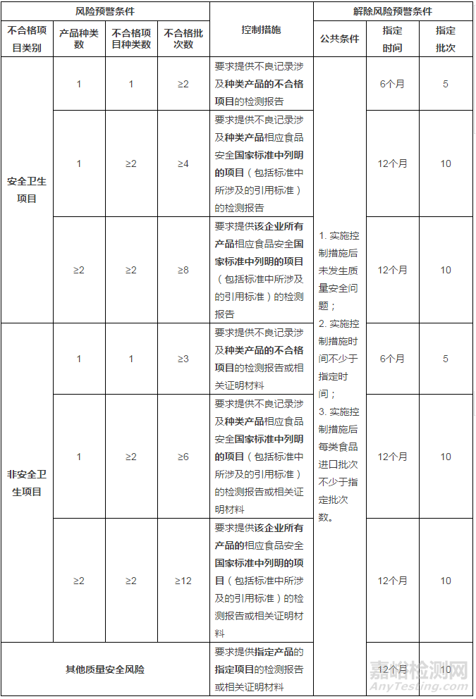 (二)境外不良記錄進口食品企業(yè)滿足解除風險預警條件時(附件1),可向其所在國家/地區(qū)食品安全主管部門申請解除風險預警。該國家/地區(qū)食品安全主管部門根據企業(yè)申請開展調查,并將企業(yè)整改措施和調查報告通報質檢總局。質檢總局開展風險研判,認為其風險已不存在或者已降低到可接受的程度時,應當及時解除風險預警及控制措施。