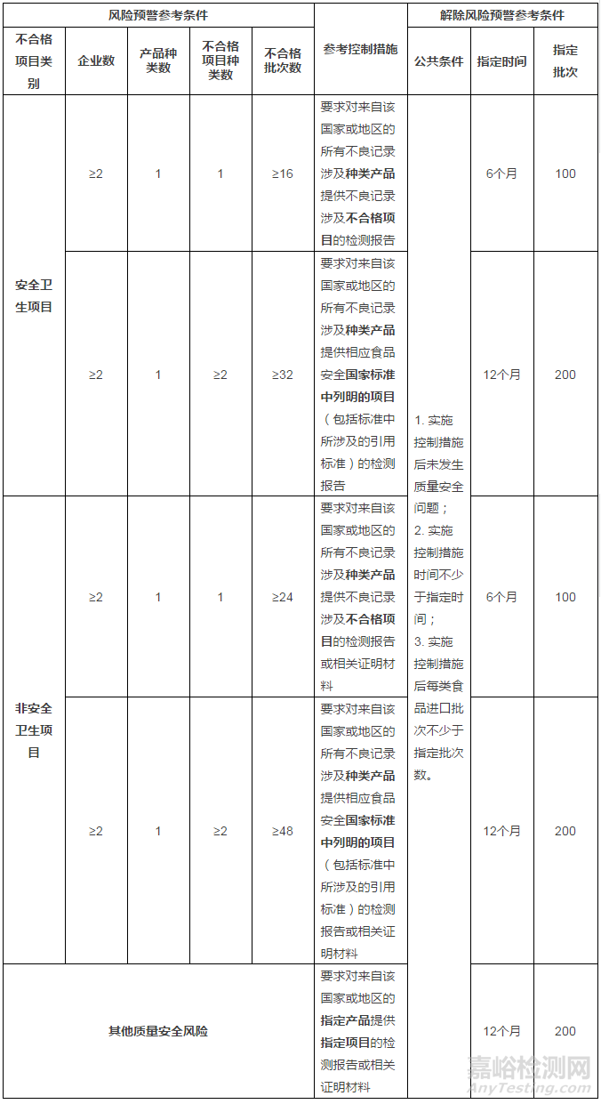 (三)不良記錄涉及整個國家/地區(qū)的,滿足解除風險預警條件時(附件2),其食品安全主管部門應將問題原因調查及監(jiān)管措施整改情況通報質檢總局。質檢總局開展風險研判,認為其風險已不存在或者已降低到可接受的程度時,應當及時解除風險預警及控制措施。