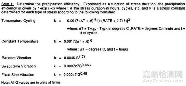 例:用60℃到-40℃以10℃/min的速率做15次循環(huán),則對應的篩選強度為:99.87%=1-EXP{-0.0017*(100+0.6)^0.6*[ln(2.71828+10)]^3)*15};