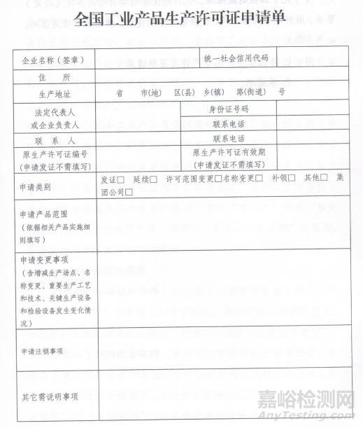 附:1. 全國(guó)工業(yè)產(chǎn)品生產(chǎn)許可證申請(qǐng)單