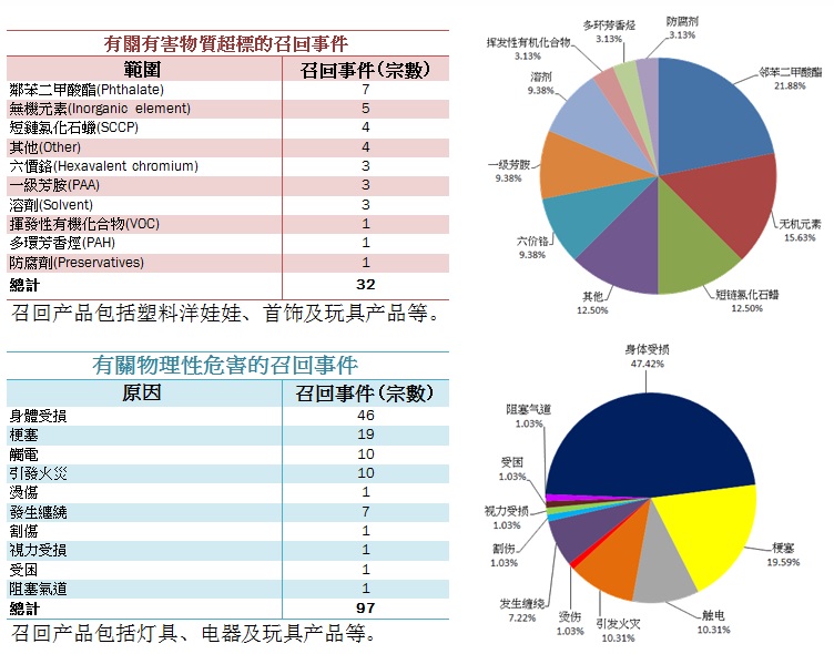 歐盟非食用消費品快速通報系統(tǒng)(RAPEX)的成立目的,是讓委員會及成員國之間可以交換產(chǎn)品被召回的信息,以防止或限制市場上銷售的產(chǎn)品對消費者健康或安全帶來潛在風險。而食品、藥品和醫(yī)療設(shè)備都不涉及RAPEX的監(jiān)管中,并由其他機構(gòu)監(jiān)控。以下的圖表顯示了于2016年1月RAPEX涉及有害物質(zhì)超標和物理性危害的召回事件。