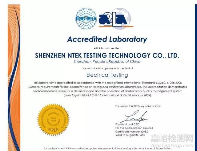 FCC最新認(rèn)可A2LA證書如下: