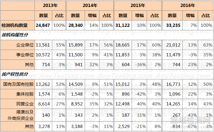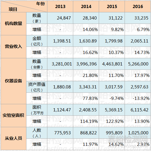 以下是認(rèn)監(jiān)委統(tǒng)計(jì)2016年檢測行業(yè)數(shù)據(jù)