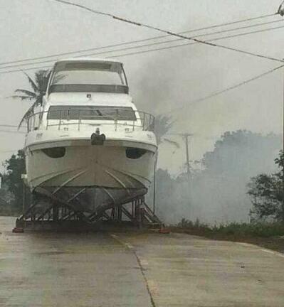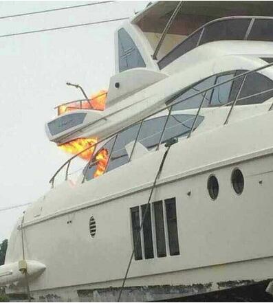 停泊于某國際游艇會的一艘豪華游艇,在雨天運輸途中經(jīng)過一條10KV高壓線后突然起火,幾小時后僅存船底,幾乎完全燒毀。該艇全長超過20米,超豪華配置,原產(chǎn)于意大利,完稅價約1800萬人民幣(出廠價165萬歐元,出廠價不含選配、稅費、運輸費等其它費用)。
