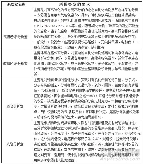主要有天平室、高溫室、純水室、氣瓶室、貯藏室、溶液配制室、暗室等。