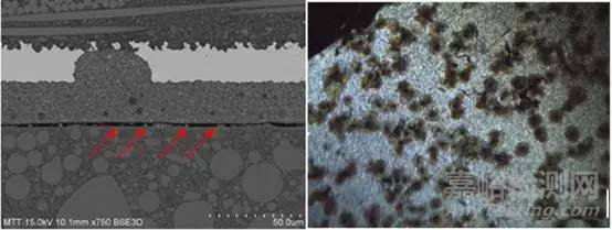 圖7 左IC分層失效 、右涂層樣品界面點(diǎn)腐蝕失效