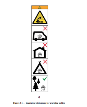 | 7 | added the addtional requirement to instruciton about the figure "both for open and closed barbecues and also for permanent barbecues (choose one of the following options: Figure 14 a), b) or c),"Do not use the barbecue in a confined and/or habitable space e.g. houses, tents, caravans, motor homes, boats. Danger of carbon monoxide poisoning fatality." The pictogram could be in black and white in the instructions manual." | ||