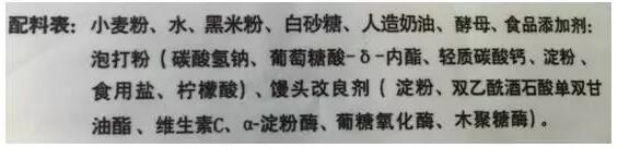 很多時候生產(chǎn)過程中用到的食品添加劑如泡打粉、饅頭改良劑等。這些添加劑成分通常不是單一的,而是復合食品添加劑,這種情況下需要企業(yè)把該復合配料都一一列出,如下圖。