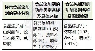 企業(yè)應按照食品添加劑的加入量遞減順序全部真實地標示食品添加劑,根據(jù)GB7718-2011附錄B選擇以下的形式標示。