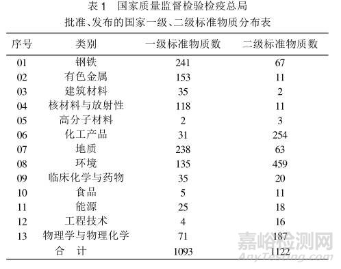 我國將標(biāo)準(zhǔn)物質(zhì)分為13 類,分類情況如下表:
