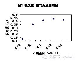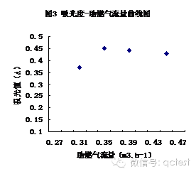 在初步固定的條件下,通過改變助燃氣的流量而改變助燃比,測得銅標準溶液在不同助燃氣流量時的吸光值,測定數據見圖3。