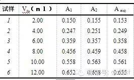 分別吸取銅標準溶液(0.1mg.ml-1)2.00、4.00、6.00、8.00、10.00、12.00、ml置于一組100ml容量瓶中,加入2.0ml鋁溶液,以水稀釋至刻度,混勻。