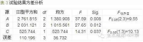 對正交試驗結(jié)果作進一步方差分析,見表 3。