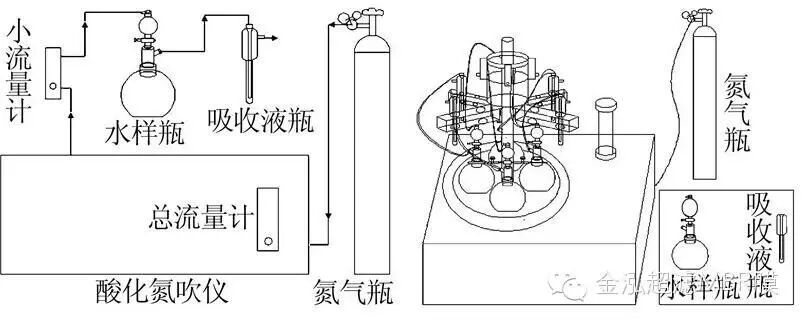 儀器:ICS900型離子色譜儀,美國戴安公司;TTL-HS型水質(zhì)硫化物酸化吹氣儀(見圖 1),北京同泰聯(lián)科技公司;DR2800型紫外分光光度計,美國哈希公司。