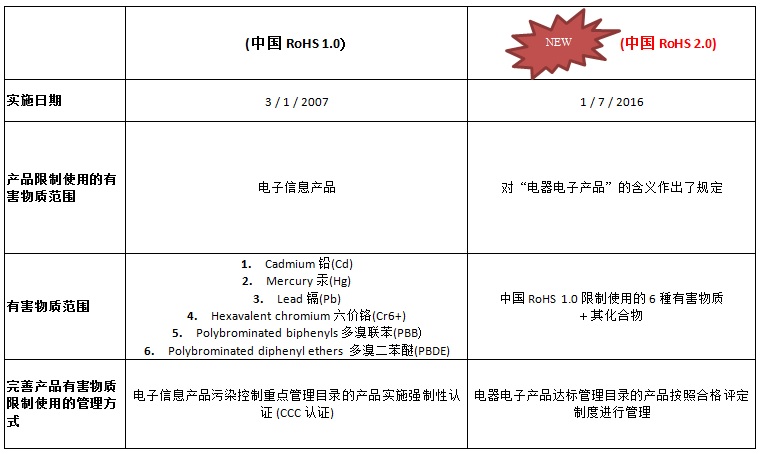 中國RoHS 2.0將于2016年7月1日開始實施。請參照下表了解重點修改部分。 詳情可與我們業(yè)務(wù)代表聯(lián)絡(luò)。www.cmatcl.com