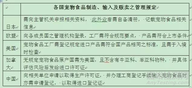 (三)各國寵物食品制造、輸入及販賣之管理規(guī)定