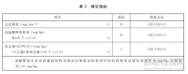 國內(nèi)目前通行的標(biāo)準為:GB 4806.11-2016,食品接觸用橡膠材料及制品必須符合食品安全國家標(biāo)準中對食品接觸材料及制品的規(guī)定。其具體感官要求如表1所示,理化指標(biāo)如表2所示。