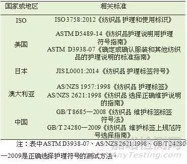 標(biāo)準(zhǔn)有國際標(biāo)準(zhǔn)ISO 3758(ISO)、JIS L0001(日本)、AS/ NZS 1957(澳大利亞)、ASTM D 5489(美國)、GB/ T 8685(國內(nèi))