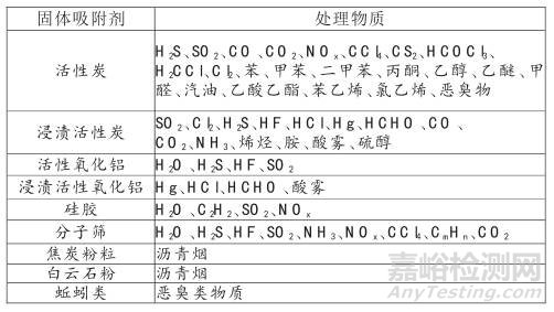 固體吸收法是使廢氣與固體吸收劑接觸,廢氣中的污染物(吸收質(zhì))吸附在固體表面從而被分離出來。此法主要用于凈化廢氣中低濃度的污染物質(zhì),常用的吸附劑及其用途見下表。
