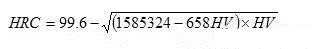 本公式與國(guó)家標(biāo)準(zhǔn)實(shí)驗(yàn)換算值對(duì)照,換算式計(jì)算結(jié)果與標(biāo)準(zhǔn)實(shí)驗(yàn)值之誤差為±0.1HRC。