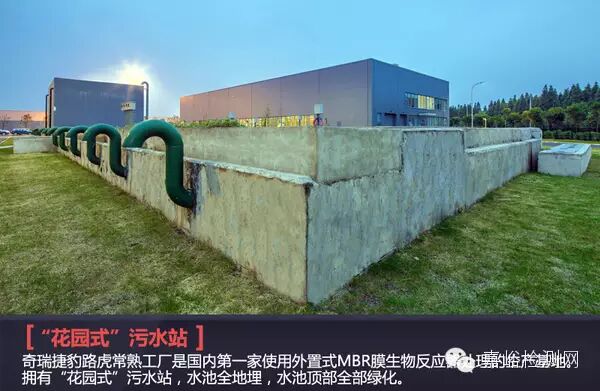 奇瑞捷豹路虎將“共享價(jià)值”這一與環(huán)境保護(hù)緊密相關(guān)的理念作為企業(yè)的核心理念之一,因此廠區(qū)建設(shè)在環(huán)境措施及能源措施方面投入巨大。奇瑞捷豹路虎常熟工廠是國內(nèi)第一家使用外置式MBR膜生物反應(yīng)器處理的生產(chǎn)基地。膜組件的集成化程度高,占地面積較小。設(shè)備位于站房內(nèi)部,運(yùn)行、檢修方便、同時(shí)增加了站房的美觀程度。擁有“花園式”污水站,水池全地埋,水池頂部全部綠化,區(qū)域功能性分明,環(huán)境優(yōu)美。三效蒸發(fā)器能夠蒸發(fā)反滲透濃水,完全實(shí)現(xiàn)氮磷零排放,同時(shí)回收利用中水用于生產(chǎn)。