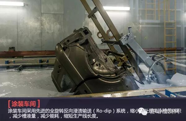 涂裝車間采用先進(jìn)的全旋轉(zhuǎn)反向浸漬輸送(Ro-dip)系統(tǒng),縮小前處理電泳槽的體積,減少槽液量,減少能耗,縮短生產(chǎn)線長度,與傳統(tǒng)擺桿輸送線相比節(jié)約設(shè)備成本約10%。改善車身內(nèi)腔脫脂、磷化和電泳質(zhì)量。為提高密封精度達(dá)到更好的隔音降噪效果,車間內(nèi)配備4臺焊縫密封機(jī)器人、2臺NVH/LASD機(jī)器人以及2臺底盤抗石擊材料機(jī)器人。不僅節(jié)約人力,更增加批量穩(wěn)定性。涂裝車間采用水性環(huán)保涂料,降低了環(huán)境污染。