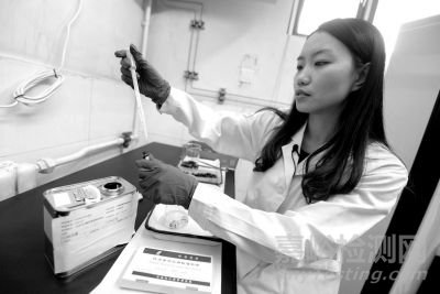 記者看到,檢測(cè)人員從送檢的樣品中抽取了一小試管樣品,然后將樣品直接放到了紫外熒光硫測(cè)定器上,隨后儀器開(kāi)始自動(dòng)操作。