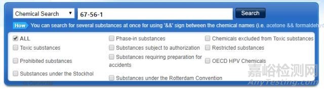 通過上下游的化學(xué)品信息傳遞(包括SDS),明確化學(xué)品中所有物質(zhì)的名稱和CAS號,形成一份詳細(xì)的產(chǎn)品中化學(xué)物質(zhì)成分清單。登錄韓國國家化學(xué)品信息網(wǎng)站(NCIS, http://ncis.nier.go.kr/main/Main.jsp),通過物質(zhì)英文名稱或CAS號,明確產(chǎn)品中每一種化學(xué)物質(zhì)的監(jiān)管狀態(tài),具體查詢界面如圖1所示。