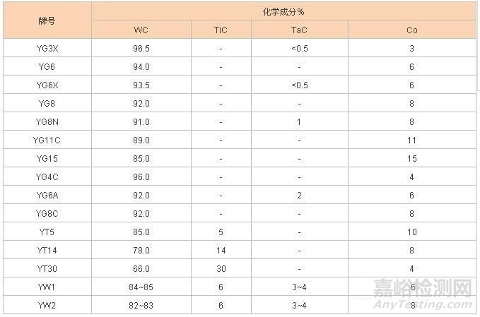 表① 常用硬質(zhì)合金的牌號(hào)及化學(xué)成分