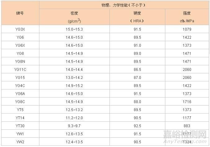 表② 常用硬質(zhì)合金的物理及力學(xué)性能