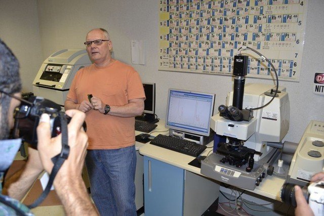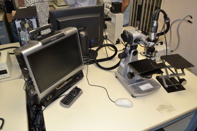 接下來(lái)進(jìn)入了材料實(shí)驗(yàn)室,這更像是一個(gè)用于取證的實(shí)驗(yàn)室,這里擺放著電子顯微鏡用于分析分子結(jié)構(gòu)。還有一個(gè)傅里葉變換紅外光譜儀,可用于識(shí)別各種有機(jī)物質(zhì)。