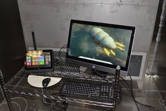 一個(gè)使用多年的EliteBook筆記本電腦受到?jīng)_擊而重啟。在另外一個(gè)36攝氏度的熱室中,一臺(tái)Windows系統(tǒng)的平板電腦在反復(fù)運(yùn)行。